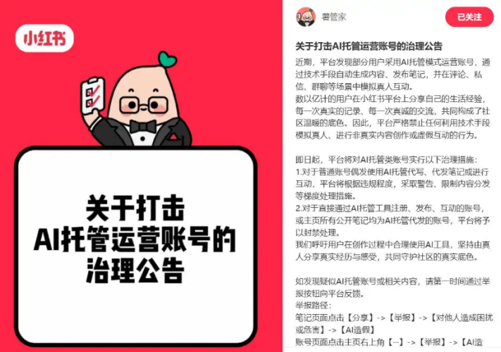 ▶小红书加强AI托管账号治理,知识创作者需重建内容真实感
