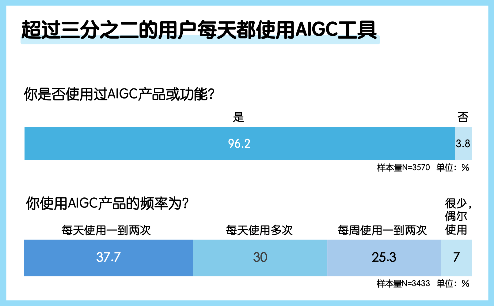 09月24日,腾讯研究院发布一项大规模调研报告,呈现了生成式人工智能(AIGC)在中国网民内容创作中的普及程度。报告发现,生成式AI已不再是少数技术爱好者的前沿工具,而是深度融入主流人群日常工作与学习的“必选项”。高达96.2%的调查对象表示曾使用过AIGC产品,其中超过三分之二(67.7%)的人群每天都使用相关产品。